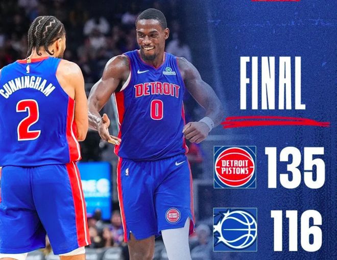 活塞135-116逆转魔术,康宁汉姆30分6篮板10助攻